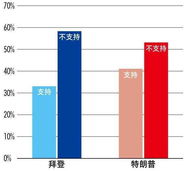 图1: 选民对拜登和特朗普工作成果的认可度均较低
