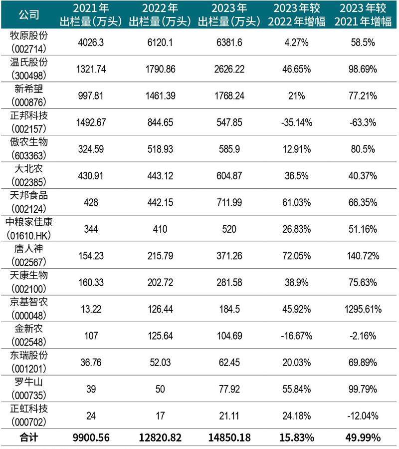 表1 :2021—2023年上市猪企的生猪出栏量及增速