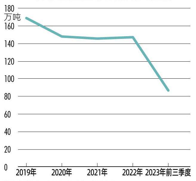 图2:2019 年至2023年前三季度鲁班比铜矿实际采矿规模