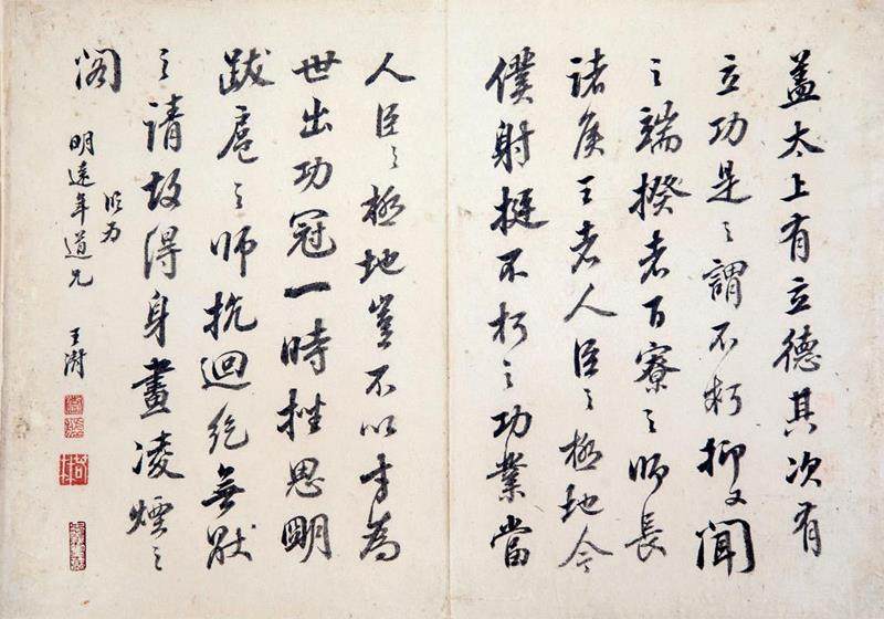王澍(16 6 8 年至174 3 年),字蒻林,号虚舟,江苏常州人。康熙五十一年进士,官至吏部员外郞。其以善书名播海内,四体并工,于唐欧、褚两家,致力尤深。康熙帝特命其充五经篆文馆总裁官。著有《淳化阁帖考正》《古今法帖考》《虚舟题跋》等,所书多被后人评赞。