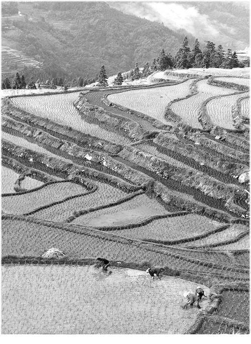 我家的田土大多都在稍微平整一点的地方。有四五块梯田连在一个逼窄的小土坡。小土坡在一条河的源头,可又不在河边,享受不到河水的恩泽与灌溉。凶年干旱,梯田里的稻禾就眼巴巴地眺望着不远处的河水咽喉干渴,枯槁而死。大多数的年成,梯田还是能享受到它们上头水渠流过来的水。但是几大弯人家户的梯田都需要同一股水渠灌溉。于是,每年夏天,这沟渠里的水就要按时分配,轮到谁家灌溉的时候,谁家就要派出人手去值守,防止别人家偷了自家的水。