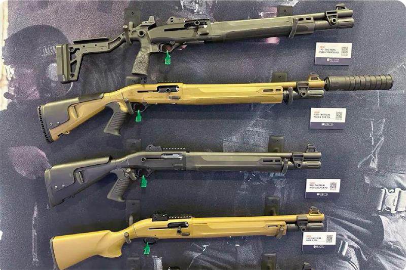 在本届展会上,伯莱塔公司展出1301 战术2 型霰弹枪,该枪是伯莱塔公司1301 战术系列的新款。相比于该系列之前的霰弹枪,该枪采用伯莱塔公司专利的B-Link导气系统,其具有安全、可靠及自清洁性能,非常适用于比赛及狩猎。该枪的另一特点是容弹量大,弹仓可容纳弹壳长70mm 的12 号霰弹8 发。1301 战术2 型霰弹枪机匣及枪管由钢材制成,护手及枪托由聚合物制成。护手较长,握持部位制有磨砂状防滑纹,确保握持牢固。该枪外观有多种颜色,包括黑色、浅土色(FDE)、OD 绿色及灰色,另外还有带小握把及不带小握把的款式,用户可根据自己的需要选择。1301 战术2 型霰弹枪枪管长470mm,全枪长960mm,空枪质量3kg。