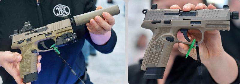 2021 年,FN 公司推出FN502手槍,本届展会展出的FN502 战术手枪是FN502 的升级版,主要改进之处是可加装微型红点镜。该枪发射.22 LR 枪弹,采用自由枪机式自动方式。其套筒座由聚合物制成,套筒座前部下方设有皮卡汀尼导轨,可加装激光指示器等附件。套筒由铝合金制成,套筒后部上方设有集合照门的盖板,更换不同的盖板可安装不同公司的微型红点镜。枪管由钢材制成,口部加工有螺纹,可安装消声器。该枪全枪长193mm,枪管长116.8mm,空枪质量0.67kg,弹匣容弹量有10 发、15 发两种。