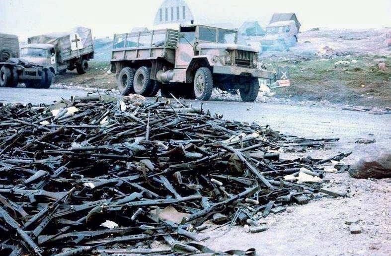轻武器方面:共有1.1万支步枪、冲锋枪和手枪,其中步枪主要是FM FAL及其变型枪,冲锋枪主要是PAM1和FMK-3,以及阿根廷自行仿制的柯尔特M1911和勃朗宁HP手枪;超过500挺各式机枪,以MAG 58通用机枪为主,还有一部分12.7mm M2机枪;400万发7.62×51mm步枪弹和其他各式弹药;超过90枚英国制造的“吹管”便携式防空导弹、120枚苏联制造的SA-7便携式防空导弹;相当数量的夜视镜、热成像仪、便携式雷达、电子战及通讯设备。