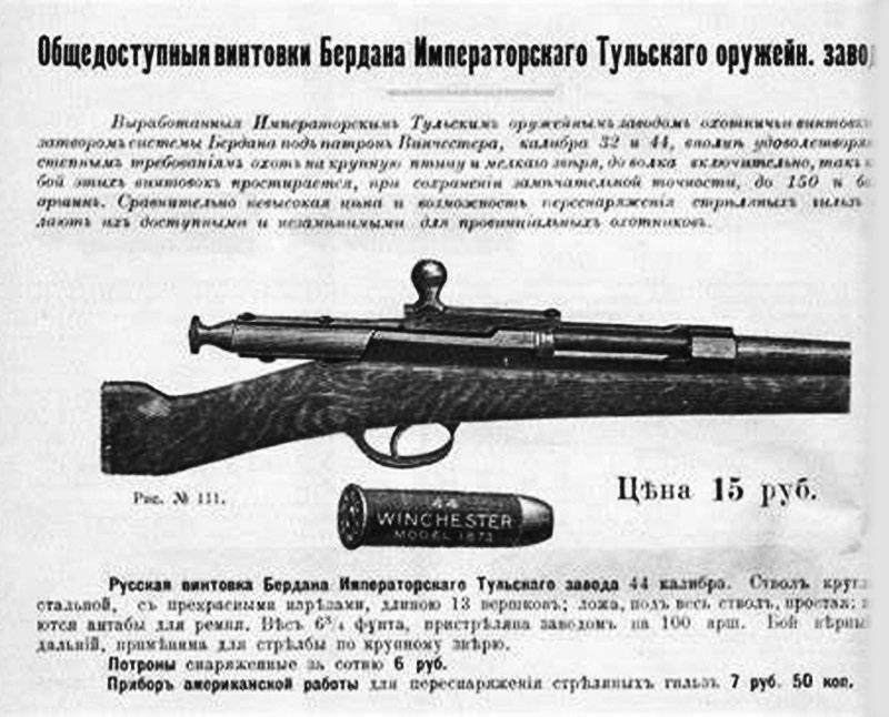 伯丹步枪的第一波退役高潮,发生在莫辛-纳甘步枪全面投产之后的数年。在1898~1899年,一部分退役的伯丹Ⅱ步枪和卡宾枪,以每支约18卢布的价格作为狩猎步枪向民间出售,另外一些则被改装成了12号等口径的滑膛猎枪。其实早在1885年,图拉兵工厂就开始利用现有的生产线和零件来制造伯丹Ⅱ狩猎步枪,但这些专门生产的民用线膛猎枪被要求不能发射军用的10.75mm伯丹枪弹,实际使用的口径包括8.13mm、9.65mm、10.16mm、11.18mm(分别对应英制的.32、.38、.40、.44口径)等,其中.38、.44口径使用的还是从美国进口的温彻斯特、史密斯-韦森等品牌的线膛枪管。