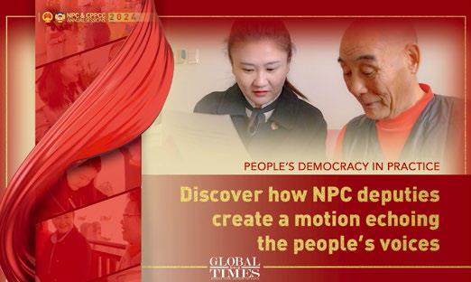 人民日报社新闻协调部联合环球时报英文版推出英文融媒体产品,以文字报道和视频报道相结合的方式,从一位全国人大代表的履职故事、一件代表议案的诞生、一个政协委员工作室的一天等维度,展现全过程人民民主在基层的生动实践。系列报道被外媒转引转载近1000次。