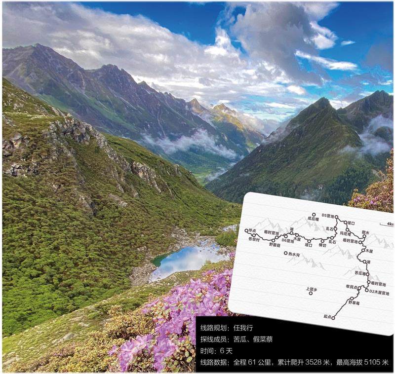 这是一条可以零距离体验皮划艇的高海拔穿越线路,泛舟在碧绿色的海子间,那种感觉无比奇妙!同时也是一条体验多路况的徒步线路,线路汇集了原始丛林、雪山、冰川、海子、瀑布、花海、牧场等众多景观,视觉上常给人以巨大冲击。