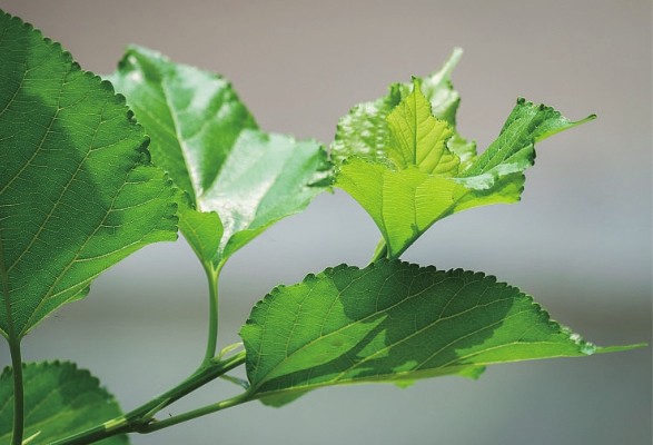 桑叶的作用是疏散风热、清肺润燥、平抑肝阳、清肝明目,属于解表药。除了桑叶之外,桑的其他部位也可以作为中药材。桑树的根皮——桑白皮,具有泻肺平喘、利水消肿的作用,属于止咳平喘药;桑的果穗——桑葚,具有滋阴补血、生津润燥的作用,属于补血药,还是一种很美味的水果;桑的嫩枝——桑枝,具有祛风湿、利关节的作用,属于祛风湿药。