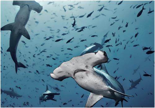 科学家相信,它们的“锤头”能感知地球的磁场。对于需要长距离迁徙以寻找猎物和繁殖场所的双髻鲨来说,对地球磁场的感知非常重要。
