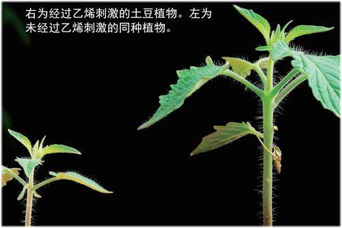 100多年前,科学家发现乙烯是一种气态的植物激素。从那以后,科学家发现他们所研究的所有陆地植物都会产生乙烯。除了控制生长和应对压力,乙烯也参与叶片在秋天变色和刺激果实成熟等其他过程。