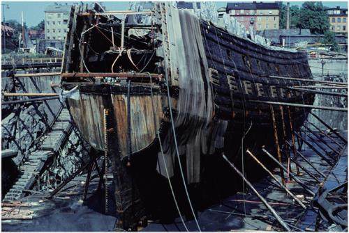 瑞典“瓦萨号”(Vasa)沉船的打捞本是一个成功的范例,但打捞上来后就遇到了保护的难题。一个由瑞典跨学科专家组成的研究小组研究发现:“瓦萨号”在斯德哥尔摩湾30多米深的海底沉睡了333年的时间,在这一过程中,它积累了大量的硫化氢。日积月累,硫化氢分解,硫元素就留在了船体中。当船被打捞出水时,木材中的硫元素就与空气中的氧等物质发生化学反应形成了硫酸。“瓦萨号”上有超过9000个铁制螺栓,而三价铁离子能促进硫元素和氧元素化合的过程,螺栓的腐蚀无疑使“瓦萨号”毁坏的过程雪上加霜。一方面,硫酸能破坏木材中的木质素;另一方面,硫酸盐的结晶过程会导致膨胀。这两个化学和物理过程最终可能导致“瓦萨号”完全解体和腐烂。专家建议:应该从消除铁催化剂的活性入手,来减缓硫酸化的进程。“瓦萨号”的命运为文物保护提供了宝贵的经验和教训,也为形成“南海I号”的保护思路提供了明确的目标和方向。
