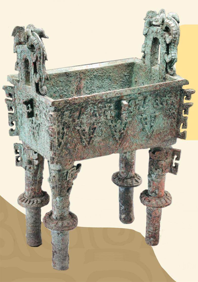 首先,它是一件四足方鼎。从“三足鼎立”这个成语我们可以知道,鼎一开始都是三足的,可以直接架放在火堆上,既方便操作,又具有稳定性。而像太保鼎这样的四足方鼎则出现得较晚,主要作为礼器使用,因此比较珍贵。