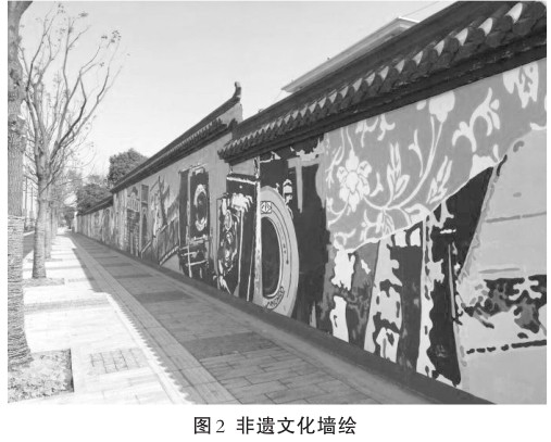 具体而言,以连片优化的方式对景区及其周边进行改造,不仅要求在景区内部合理规划能够开展非遗体验活动的场所,在景区周边,也可以借助景区资源的环境优势,以旅游景区为中心,在其周边规划建设能够带动景区非遗活动开展和文创产品销售的小镇、商业街、博览园等,让非遗主题贯穿整个景区的经营模式和场所,为促进非遗的传承和保护提供良好的客观环境支持。这一过程中,可以借助涂鸦的方式作为旅游景区非遗主题的体现和装饰,彰显景区的独特性(如图2)。