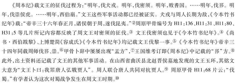 结合以上被征方国的地理位置,大致可以推断出周文王先通过断虞、芮之讼,讨伐犬戎、密须,称霸以周原为中心的西土地区。