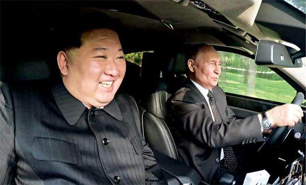 当地时间6月19日凌晨3时,俄罗斯总统普京抵达平壤,朝鮮最高领导人金正恩亲自到机场迎接。这是普京时隔24年后再次访问朝鲜。当天下午双方会晤结束后,普京亲自驾驶自己的“奥鲁斯”专车,载着金正恩“兜风”(见主图)。此外,两人散步谈话、观看演出等,共交流约11个小时。