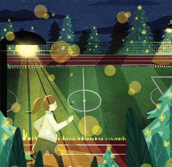 我喜欢下晚课后去操场上跑步。上完一天的课,总算有能够喘息的、真正属于自己的时间,什么都不用去想,只需要全情投入地感受周遭的一切。四周都是安静的夜色,只有操场上喧嚣不止。操场被一排高大的水杉包裹着,外围昏黄的灯光透过它们密密匝匝的枝叶斑驳地闪烁着,像一圈星星。