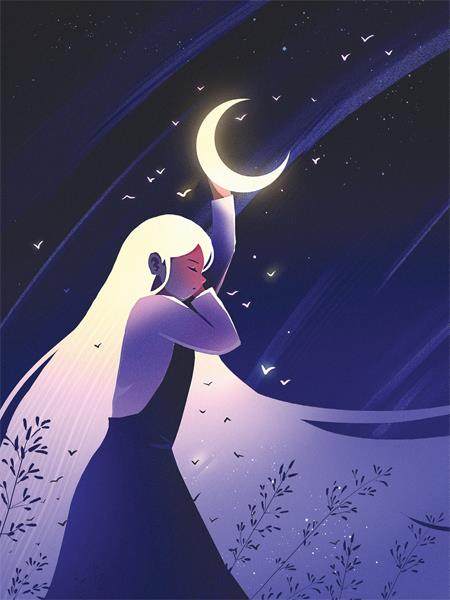 月光不仅走入了你一个人的心,也在千千万万的人的心中荡起涟漪。当月光投进艺术家的心底,它在那深沉细腻的心中,缓缓酝酿,一抹轻盈的月色凝结成不朽的珍珠。这些月光因此从一个人心底的感动进入整个人类的记忆。人人都知道几轮著名的月:源自一首诗、一篇文章、一首钢琴曲,甚至一段舞蹈……单从绘画一面来看,与之相关的作品便不可胜数。千百年来,一代代人描摹着月色,至今仍未画尽。然而月夜夜升落,论珍稀,不如珠玉金银;论变化,不过阴晴圆缺;论多姿,不若云霞岚雾;它清冷,没有缤纷之色、跃动之姿;它遥不可及,不能近嗅芬芳,不能抚摸把玩。偏偏月又成为不竭的创作之源,原因在何?画作中其实早已给出答案。