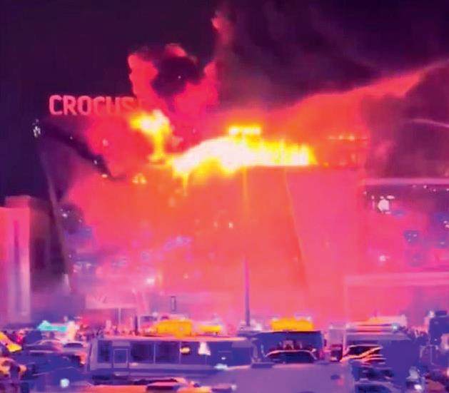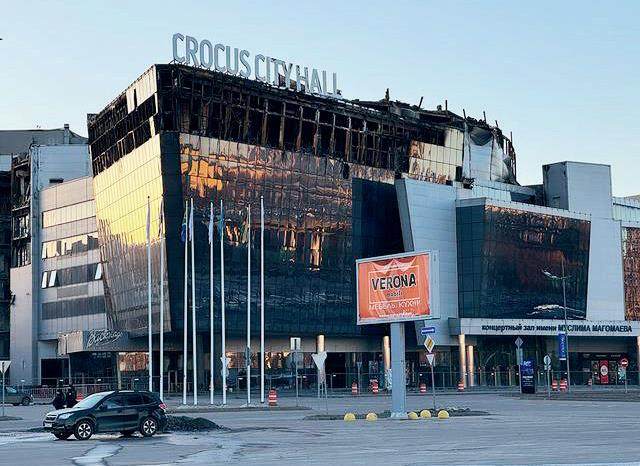 3月22日18:54,4名身着迷彩服的恐怖分子乘坐白色雷诺轿车事先驱车至克罗库斯城音乐厅大楼附近观察,在等待多数观众进场后,他们手持AK系列突击步枪,打死打伤门口执勤的保安人员,冲进正在准备演出的“俄罗斯老牌摇滚乐队‘野餐’音乐会”大厅,向已进入大厅的观众实施无差别枪击。尚未坐稳的观众被突然的枪击打得晕头转向,有的寻找出口试图逃跑,有的就地卧倒藏在座位下求生,有的受伤后依托座位隐蔽等待救援,有的在不知不觉中被恐怖分子打死,空气中弥漫着的无奈、无助、无援、无法控制和无法逃生的感觉令人窒息。正在观众躲避枪弹、求生不能时,恐怖分子又投掷燃烧弹,导致音乐大厅爆炸起火,音乐大楼几乎被大火吞噬,爆炸和火灾引起的大厅建筑坍塌面积达七千多平方米;大厅内一些中弹和没有中弹的观众或被烧死,或被烧伤。枪击、爆炸、火灾造成的伤亡人数近700人。