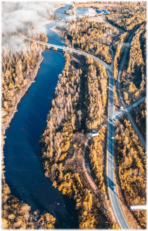林都伊春的汤旺河蜿蜒穿梭在森林中,道路伴随河流曲折前行,宛如丝带舞动这片金秋。初升的阳光唤醒大地,晨雾渐散尚存一丝朦胧,为静谧的秋天增添几分神秘和梦幻。这是一幕交织了宁静与生机的小兴安岭独有的秋日风情。