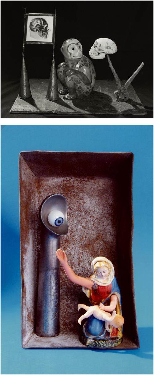 每一张照片都是精心设计的舞台,由他在家里年复一年积累的精美而奇特的物品组成。他的抽屉里装满了旧工具、鸟类骨架、褪色的花朵、小而无用的物品。他想象中的物体奇怪且不协调的关联创造了令人惊讶的、有时令人不安的图像,其中幻想和死亡不断共存。