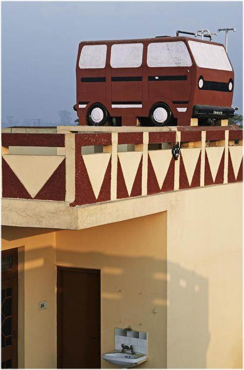 拉杰什·沃拉(RajeshVora)是一位摄影师,他对日常巴洛克风格(2014—2019)产生了浓厚的兴趣。这种风格主要体现在旁遮普腹地住宅屋顶上的日常雕塑,这些雕塑得到了第一批非居民印第安人(NRI)的赞助。早在20世纪70年代末,这些NRI就开始在自己的村庄建造房屋。從那时起,这种独特的现象就在野心和想象力中不断增长,成为村庄景观不可分割的一部分。