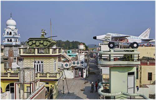 虽然大多数房屋在一年中都处于关闭状态,等待主人回来度过一年一度的假期,但这些色彩缤纷的物品提醒社会他们的奋斗、成就和繁荣。坦克、举重运动员、英雄、足球和足球运动员、莲花、动物、无处不在的马鲁蒂汽车,以及其中最重要的、从屋顶飞来的飞机,在宁静的风景中勾勒出引人注目的天际线。