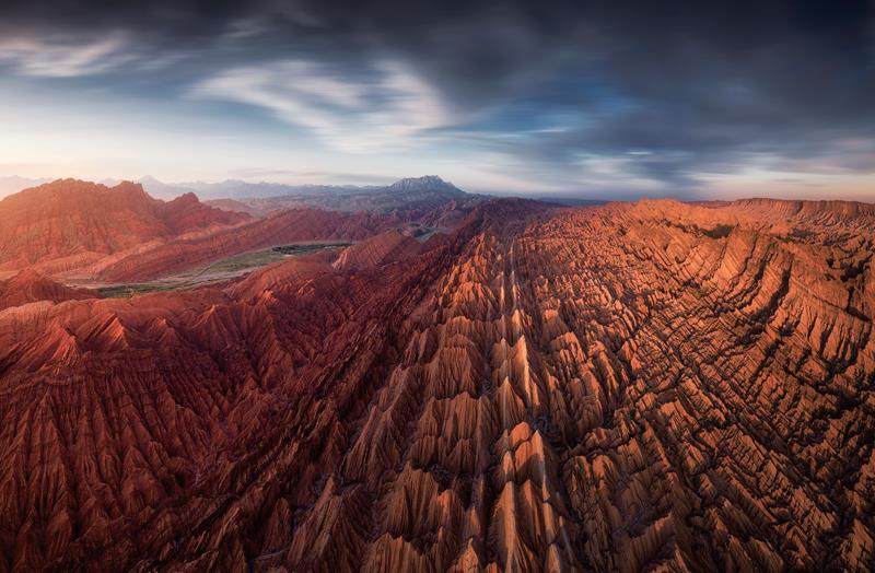 在南疆阿克苏地区库车市向北66公里处,独库公路(国道217线)西侧,有一片红色的山体,层层叠叠,分外壮观,形成了令人惊叹的石林。这些红色石林,被当地人称为“红山石林”。