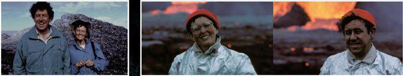 1968年,他们第一次共同探索火山,联合一位好友,靠着勉强够用的补助金和别人捐赠的车子,他们到冰岛探寻火山。这场行程并不顺利,车子抛锚了27次,最终撞毁。莫里斯右脚踝跌进了温度高达140℃的滚烫泥水中,皮肤像洋葱一样剥落。但他谈起这件事时毫无痛苦神色,还自得地说,