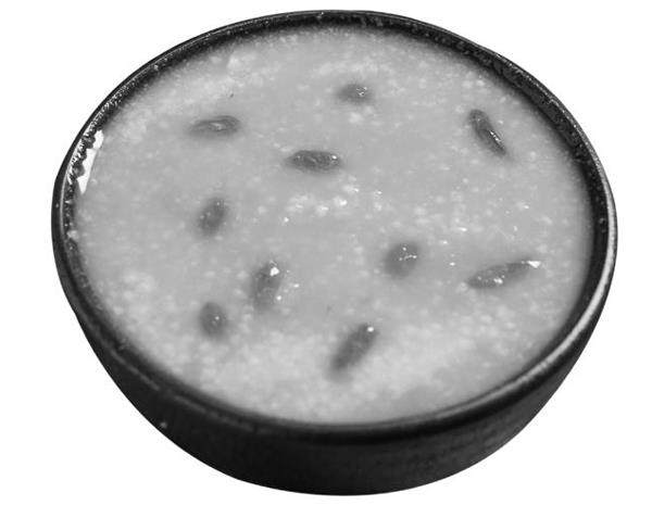 玉米糁子吸足水分后变得胖乎乎的,变长了一倍。