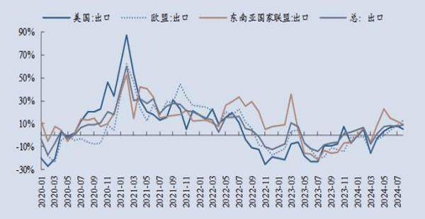 年中以来,随着全球制造业PMI见顶,叠加美国就业市场的降温,衰退情绪逐渐升温。但从美国基本面数据来看,美国经济三季度以来出现了放缓迹象,而非衰退迹象,劳动力市场是降温,而非恶化。预计软着陆和渐进式预防性降息是基准情形,在三四季度美国经济增长有所放缓,但未必出现趋势性走弱。后续随着全球降息周期的开启,金融条件转松,美国商品需求周期将重启,叠加低基数影响,出口仍将保持较为健康的增速表现,是中国本轮周期修复的重要力量。