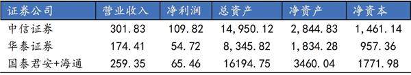 表1 国泰君安+海通中报营收与行业前二券商业绩、资产情况对比(亿元)