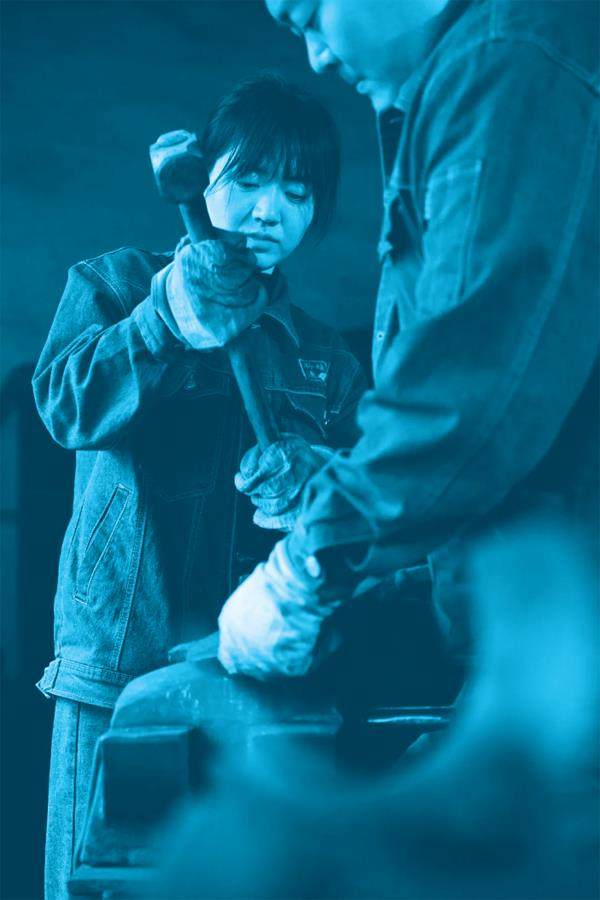 孙银莹小时候,别的女孩都玩扔沙包、踢毽子的游戏,而她却喜欢玩铁锤、铁砧和锻造后的边角料。刚开始,她从最简单的锻造物开始练习,在玩乐中逐渐了解了不少相关知识,打铁技艺也逐步提升。13岁时,她便展现出了非凡的才华,独立打造出一把几斤重的大油勺,令家人颇感惊讶。