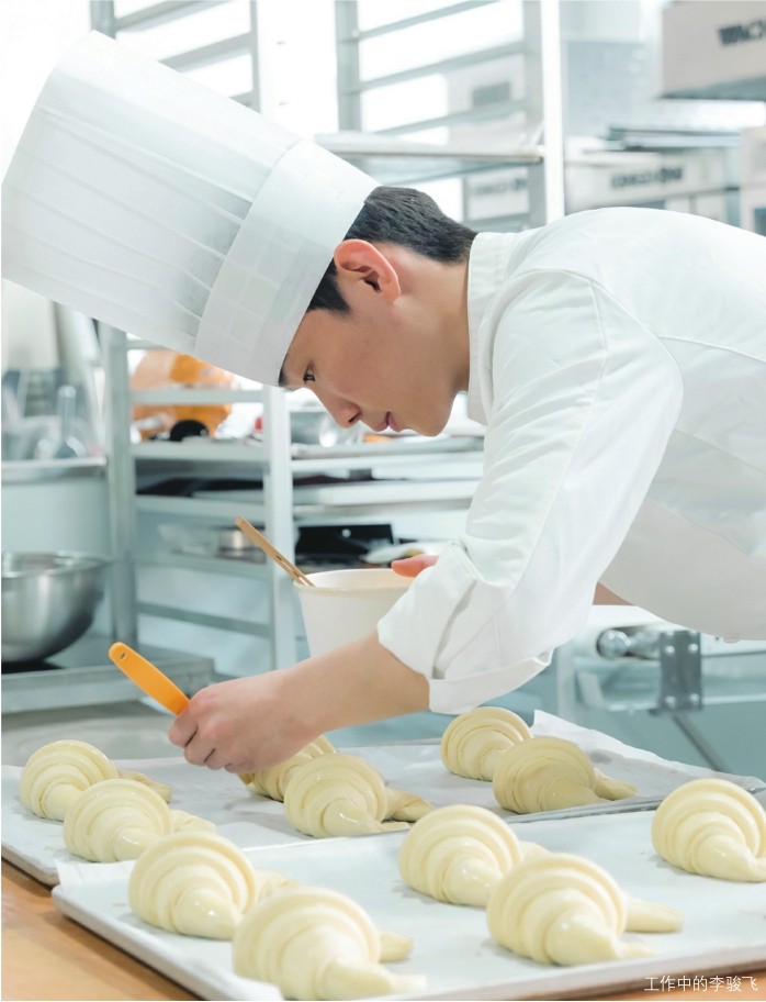 “接触烘焙是源于喜爱,后来参加比赛,让我和烘焙有了不解之缘,现在烘焙已然成为我毕生追求的事业。”李骏飞说,“一直以来,我不太喜欢一成不变的东西。很多事情可能需要一定时间、一定重复次数就能做好,但做面包不一样,需要不同的温度、水温,不同面包品种制作方法也不同,这就给烘焙师带来了很大的探索空间,我喜欢这样的挑战。”