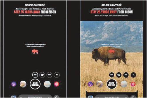 要使用该滤镜,山谷和荒野休闲区的游客需要在Instagram应用程序中打开“ 自拍控制” 滤镜。选择好要拍摄的野生动物类型后,游客必须将动物的轮廓与图标对齐。如果现实中的动物比图标大,则说明距离太近,应该后退。