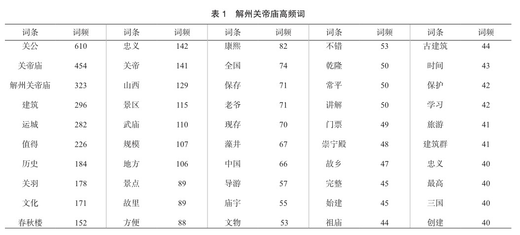 关键词:网络文本分析;游客感知;解州关帝庙