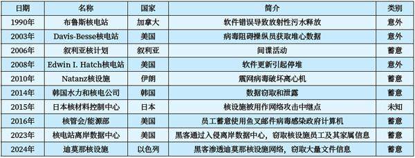 部分核设施网络安全事件情况