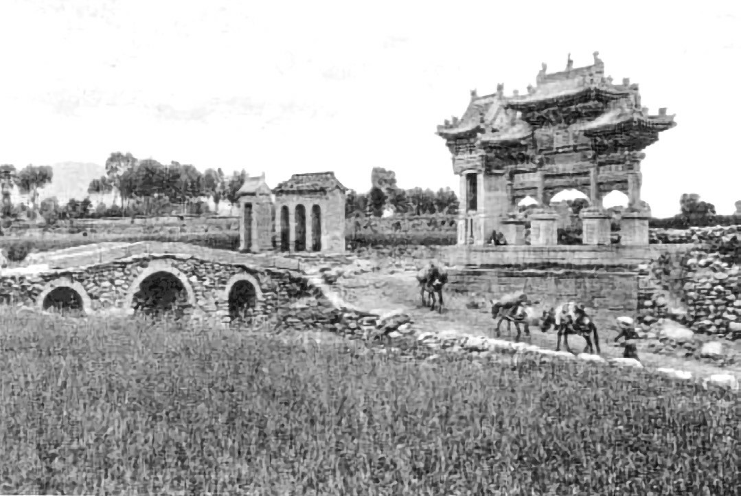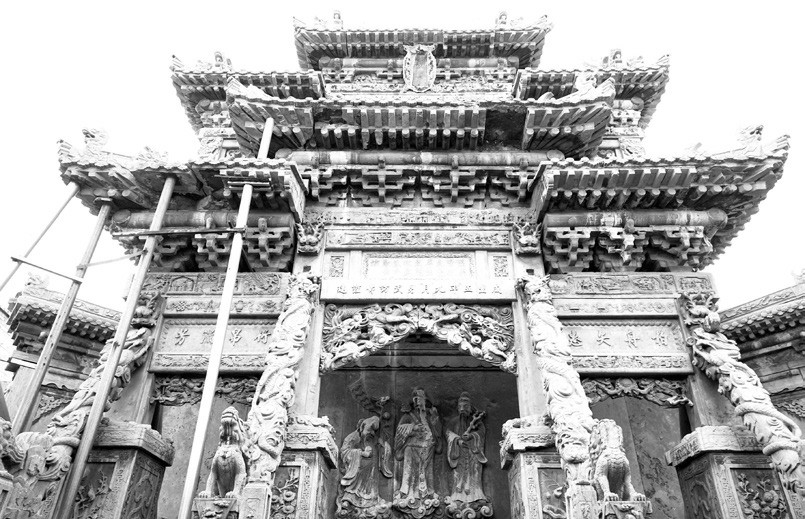 朱氏牌楼,亦名朱氏石坊,原有三座,现存两座,均为石质。主坊、影壁、石刻狮子和旗杆位于阳武村内,占地面积189.26平方米;配坊及碑亭建于阳武村外,占地面积588.92平方米。