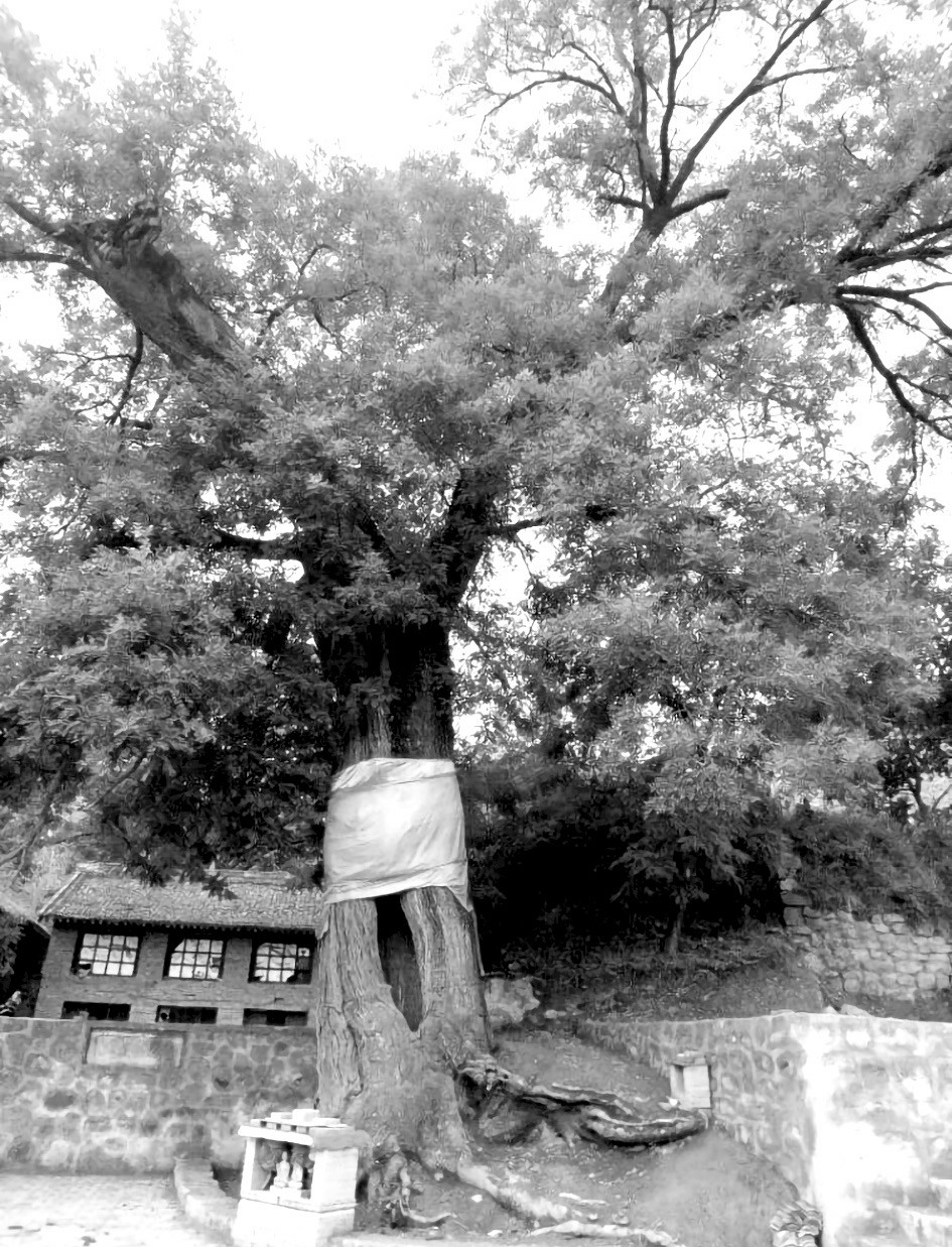 同时这座古村的布局符合传统的堪舆之说。村子的东面是一条河流,俗称“十字河”,根据《走进翼城》中关于翼城水利的相关介绍,其属于续鲁峪河的上游分支,河道有水,但是水量较小。村北入口处,建有一座四圣宫,是一座元代的道教宫观,以河道为海拔基准点观测的话,四圣宫建立在10多米高的一座土垣台基之上,因此我推测,这座道观的建立和村东的河流有一定关联。很可能是这条河流在古代水流量较大,对于村庄百姓的生命财产构成了一定程度的威胁,村里的百姓为了镇压水患,才集资在村北入口的高地上建起了这座道观。四圣宫距离村子的正中位置大概有500米的距离,主村在四圣宫的西北面,与四圣宫相比,海拔还要高5米左右,村落的正中央是曹元帅祠,曹元帅祠堂往东鳞次分布着“大夫第”等十余座古宅院,整体地势是西北高东南低,所以主体街道是有一定坡度的。由于处在晋南与晋东南交界处的山区,这里的房子使用大块的石头作为主建筑材料,街道、院墙、房屋的墙壁主要使用石块,只有墙体的上部和顶部使用少量的青砖进行建设,这也显示出因地制宜的建筑特色。沿着主街道往南,地势又逐渐降低,村南的地标是一株大槐树,据传种植于隋代,距今已经有上千年的树龄。槐树的周边,建有几座四合院,推测这里应该就是过去村落的南面边缘。中国的传统村落,通常是以血缘关系为纽带的氏族村落,村落的核心景观即为宗族祠堂。古人崇尚风水,也会根据五行八卦的理论在村中建设神庙、天池、宝塔以及种树,以弥补缺憾,镇压恶煞,庇护后人。因此,曹公村先民根据东面临河,西面为台垣,且西高东低的地势,以元帅祠堂为核心,在村北口建设有四圣宫,在村南口种植有千年大槐树作为地标,可以看出曹公村的布局属于典型的北方传统村落布局。