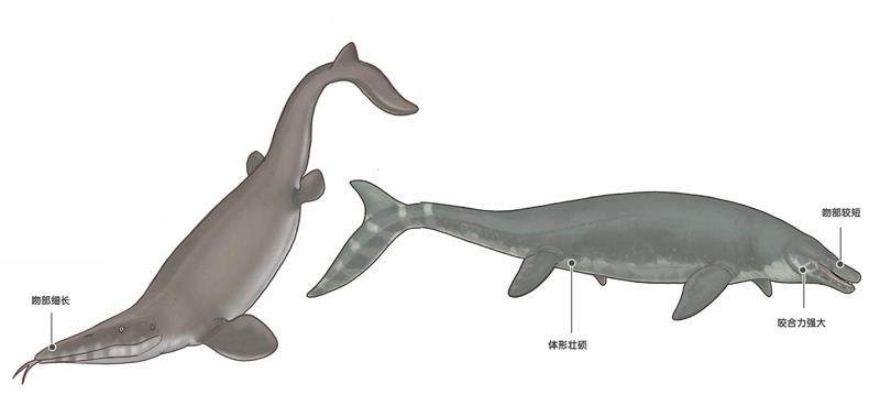 上一期我们认识了来自摩洛哥的两种沧龙,这一期我们来看看这里还有哪些有趣的沧龙种类。似长吻鳄龙有着细长的吻部,这也是它名字的由来——古生物学家认为它们长得像生活在南亚的长吻鳄。似长吻鳄龙牙齿锋利,牙齿间距较宽,上下颌.闭合时牙齿可以牢牢咬合,捕食时能够牢牢地咬住滑溜溜的鱼。和其他残暴的沧龙类.不同,它们以小鱼小虾为食,有效地避开了与近亲的竞争。