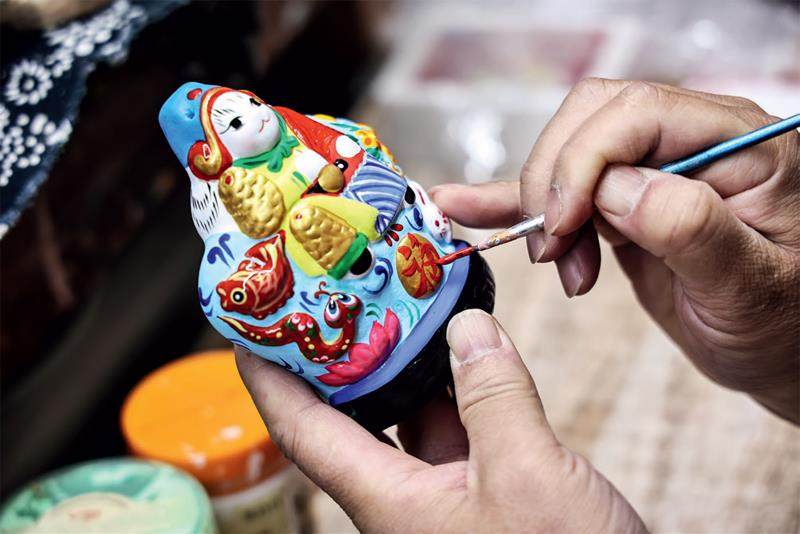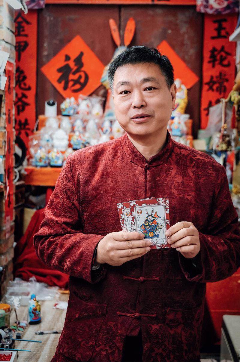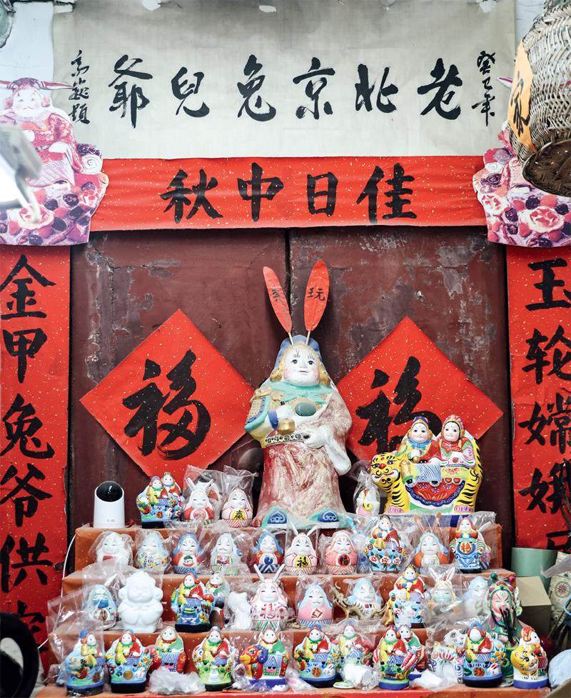 早年,张忠强虽跟随父亲从事毛笔制作工作,但心中对泥彩塑的热情从未消减。“握着毛笔时,心里想的还是泥巴的触感。最终,我还是顺从内心,一头扎进了泥彩塑的世界。”20世纪90年代,他的第一家兔儿爷店在市场的期待中开业,迈出了传承兔儿爷技艺的坚实一步,也开启了他与兔儿爷商业缘分的大门。