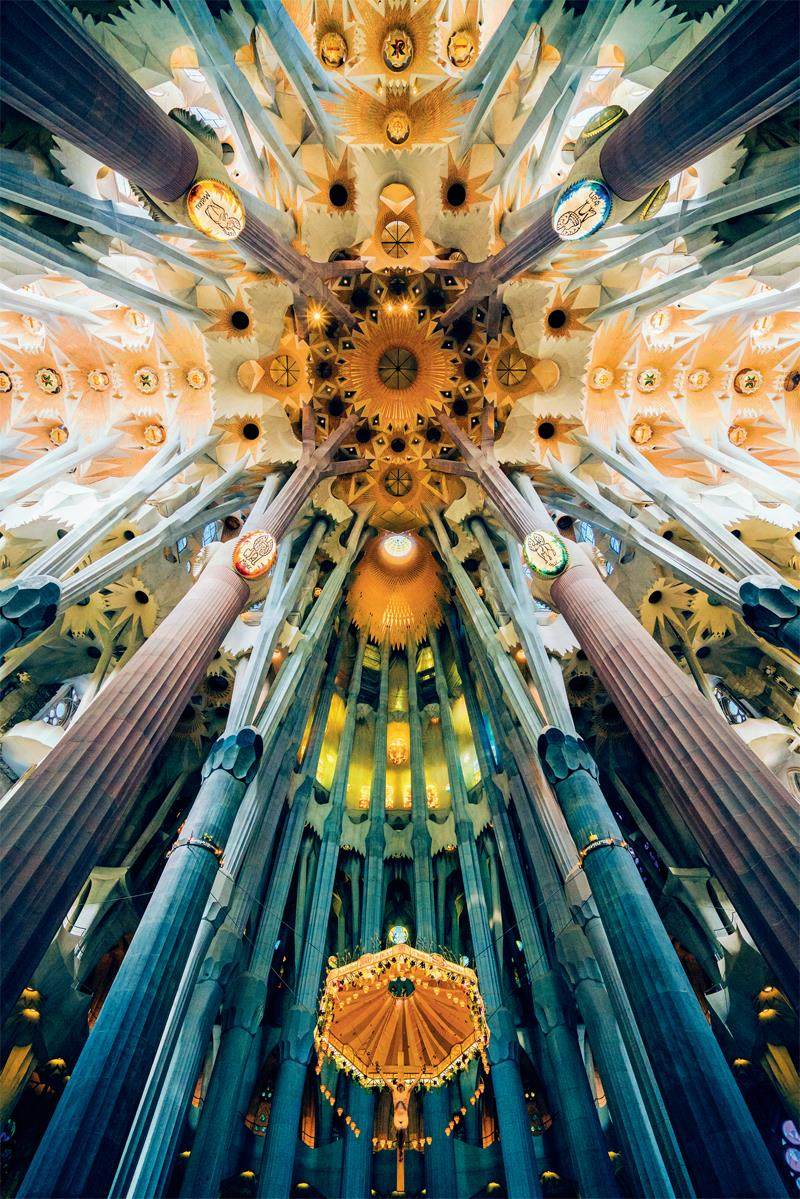 高迪将整个教堂内部空间设计成一座巨型森林,围绕着教堂的柱子如同繁茂的有旺盛生命力的大树。