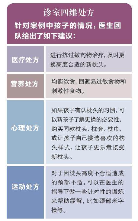 案例中的孩子出现的不适和枕头有关:一是枕头清洁不好,导致孩子发生霉菌过敏;二是枕头从孩子1岁多开始使用就没有更换,可能枕头的高度已经不适合孩子了。