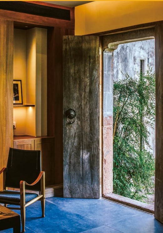 如今看到的马头墙、冬瓜梁、屋顶瓦片、木门窗格、檐廊天井等,都是由当地老工匠亲自修复而成。与原本年久失修、狭小、昏暗、潮湿的内部空间不同,现在的小院不仅宽敞明亮,前厅还设计了一块玻璃地板,可以直接看到脚下通往荷塘的流水,而一抬头,便是自由生长的古树。