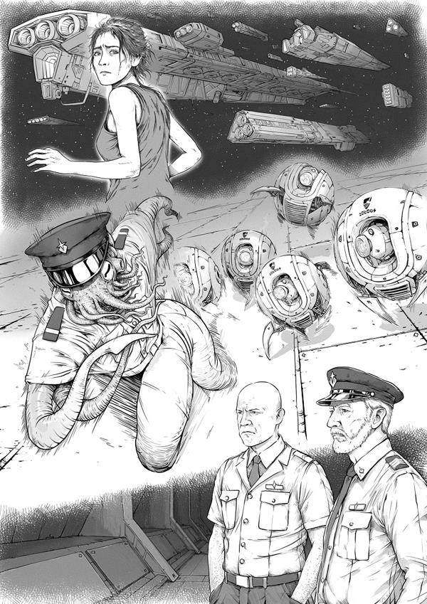 各个途经点的证明也很正常,每个边检员的签名还附带着他们的头像——都是地球人,只有一个甲壳类智慧生命,那是多姆星人。很快他的签名人员中就会有我—— 一个穿着黄色制服、有着明亮蓝绿色皮肤、如同地球章鱼一样的奈科斯星人——只要我把自己的触须放进工作台的签印端口。
