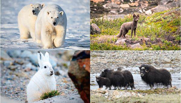 ■ 格陵兰岛的极地气候孕育了一片独特的野生动植物天堂。环绕岛屿的海域是海豹、海象和鲸鱼等众多海洋哺乳动物的乐园,岛上的冰盖和苔原上生活着北极熊、北极狐、驯鹿、麝牛等陆地动物。这里还栖息着约230种鸟类,其中包括海雀、雪鸮等典型北极鸟类。