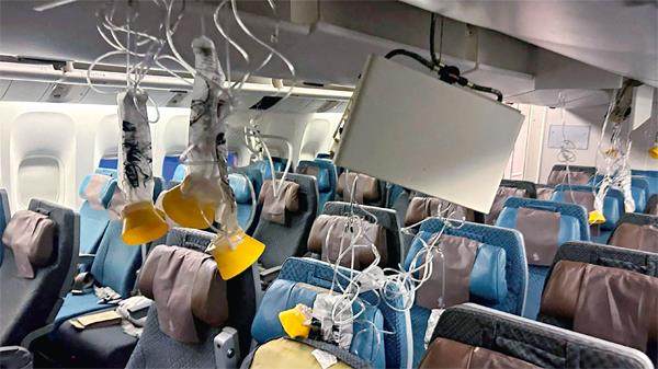 新加坡航空321号航班的事故更是惨烈。2024年5月,该航班从伦敦飞往新加坡樟宜机场。18名机舱乘务员开始为机上211名乘客供应早餐时,许多乘客还在感叹这一夜的飞行是多么平稳。孰料情况却急转直下。这架波音777在缅甸上空1.1万米的高度,遭遇了新加坡航空飞行员经历过的最严重的湍流。飞机在短短几秒内急剧上升110米。飞行员立即打开安全带指示灯,并试图利用襟翼减缓飞行速度。但飞机仍在五秒内下跌了54米,尚未系好安全带的乘客被猛地甩上了客舱天花板。稳住飞机后,飞行员在曼谷紧急降落。当地医生说有70余人受伤。73岁的英国戏剧导演杰弗里·基钦不幸在航班上身亡。他在事故中突发心脏病。