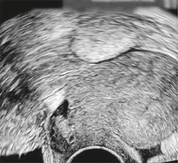 “这位患者的经历特别戏剧化。”葵宁格说。她调出了一张超声波图像。检查过程中,她使用了造影剂,以便更清楚地观察子宫的损伤情况。她指向一处白色的地方,“造影剂从子宫壁的缺口流到腹腔,子宫也在这里出现了脱垂。就像一个柔软的梨,在梨柄的下方切出了一个楔形的小口,这样一来基本没有怀孕的可能。”