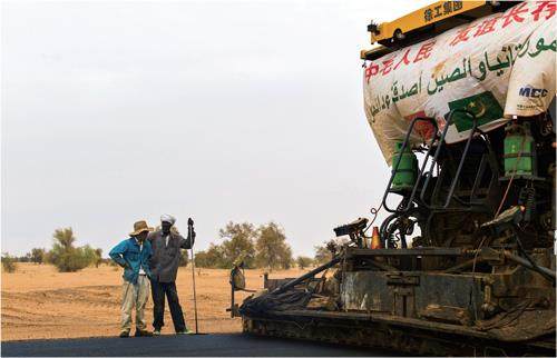 鲜亮的铅灰色延伸向远方,消失在视线尽头。周教站在刚修建完成的公路旁,欣赏自己与工友的劳动成果。当地人路过,对他喊道:“China, Great work!”