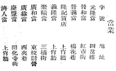 据1990年6月由太原市政协文史委编印的《太原文史资料》和2011年3月贾立进主编的《民国太原》中,由崔汉光编撰的《太原民国年间的典当业》一文,对民国中期的太原当铺业进行了全面记述。日军山岗师团所著的《山西大观》载,民国23年(1934年),太原城内有当铺11家,资本共计62640元。而据《太原指南》(阎锡山亲自把关并题写书名,民国24年五月一日刊印),1934年,民国太原市政公所批准注册的当铺有10家,两本书统计差一家。《太原指南》中登载的10家当铺具体为:元隆当(四岔楼)、晋和当(红市街)、晋义当(棉花巷)、隆记质店(上肖墙)、义隆当(上肖墙)、聚积当(三桥街)、广和当(东校尉营)、广益当(西夹巷)、庆丰当(开化寺街)、济人当(上肖墙)。这些当铺里全是曾在祁县、太谷、平遥担任过钱庄、票号、当铺伙计的老店员,担任着当铺的二掌柜或柜头。