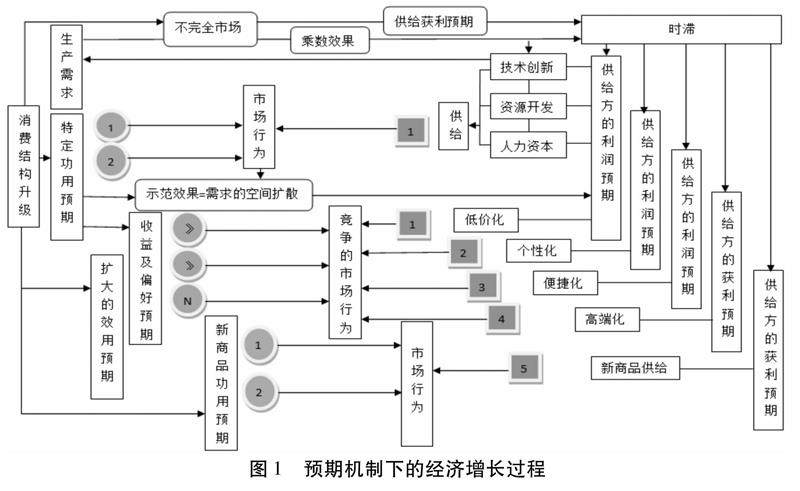 首先,对美好生活的需求通过预期机制配置市场资源是经济增长和共同富裕的动力和基本机制。第一,马克思曾多次深刻论证,需求是经济活动的根本动力,是供给之源,决定供给的质是否合于所需、量是否过剩;①第二,经济的运行是通过需求预期影响供给预期以驱使资源进入或退出市场来实现的。其中,需求预期包括价格、偏好、功用三种预期,供给预期则只有获利预期一种。当人们对某种特定功用产生需求预期后,供给方获取相关信息并产生可以获利的供给预期,调动资源进入该商品生产领域并提供一种商品来满足需求预期,逐步形成社会需求预期扩大、供给预期膨胀的态势;而当需求方对该商品失去兴趣,社会需求预期则逆转下行,供给方也随之预期下降,导致资源流出甚至完全退出该商品市场。